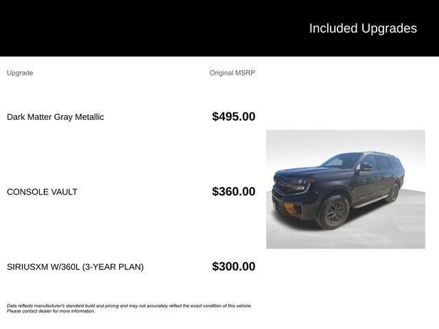 Dark Matter Gray Metallic 2026 Ford Expedition Tremor 4WD 10-Speed Automatic 3.5L V6 APPLE CARPLAY, ANDROID AUTO, Expedition Tremor, 4D Sport Utility, 3.5L V6, 10-Speed Automatic, 4WD, Dark Matter Gray Metallic, Black Onyx/Electric Spice Leather, 10 Speakers, 2nd Row Power-Folding Captain's Chairs, 3.73 Axle Ratio, 3rd row seats: split-bench, 4-Wheel Disc Brakes, ABS brakes, Air Conditioning, AM/FM radio: SiriusXM with 360L, Apple CarPlay/Android Auto, Auto High-beam Headlights, Auto-dimming door mirrors, Auto-dimming Rear-View mirror, Automatic temperature control, Brake assist, Bumpers: body-color, Compass, Console Vault, Delay-off headlights, Digital Device Holder, Driver door bin, Driver vanity mirror, Dual front impact airbags, Dual front side impact airbags, Electronic Stability Control, Emergency communication system: 911 Assist, Equipment Group 501A, Exterior Parking Camera Rear, Ford Connectivity Package (1-Year Included), Ford Digital Experience, Four wheel independent suspension, Front anti-roll bar, Front Bucket Seats, Front Center Armrest, Front dual zone A/C, Front fog lights, Front License Plate Bracket, Front reading lights, Fully automatic headlights, Garage door transmitter, Heated and Ventilated Leather Front Captain's Chairs, Heated door mirrors, Heated front seats, Heated steering wheel, Illuminated entry, Leather steering wheel, Low tire pressure warning, Memory seat, Navigation System, Occupant sensing airbag, Outside temperature display, Overhead airbag, Overhead console, Panic alarm, Passenger door bin, Passenger vanity mirror, Power door mirrors, Power driver seat, Power moonroof: Vista Roof, Power passenger seat, Power steering, Power windows, Radio data system, Radio: B&O Sound System by Bang and Olufsen, Rain sensing wipers, Rear air conditioning, Rear anti-roll bar, Rear reading lights, Rear window defroster, Rear window wiper, Reclining 3rd row seat, Remote keyless entry, Security system, SiriusXM with 360L, SiriusXM with 360L (3-Year Plan), Speed control, Speed-sensing steering, Speed-Sensitive Wipers, Split folding rear seat, Spoiler, Steering wheel memory, Steering wheel mounted audio controls, Tachometer, Telescoping steering wheel, Tilt steering wheel, Traction control, Trip computer, Turn signal indicator mirrors, Variably intermittent wipers, Ventilated front seats, Voltmeter, Wheels: 18" x 8.5" Dark Carbonized Gray Painted Aluminum.