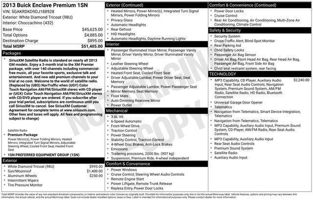 White Diamond Clearcoat 2013 Buick Enclave Premium Group FWD 6-Speed Automatic 3.6L V6 SIDI DOHC VVT FWD.
