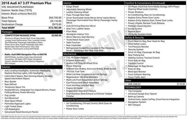 Gray 2018 Audi A7 3.0T Premium Plus quattro quattro 8-Speed Automatic with Tiptronic 3.0L V6 Turbocharged DOHC 24V ULEV II 340hp