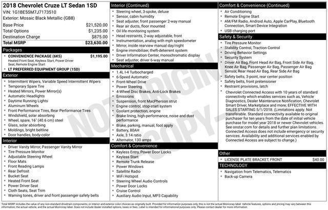 2018 Chevrolet Cruze Sedan LT (Automatic)