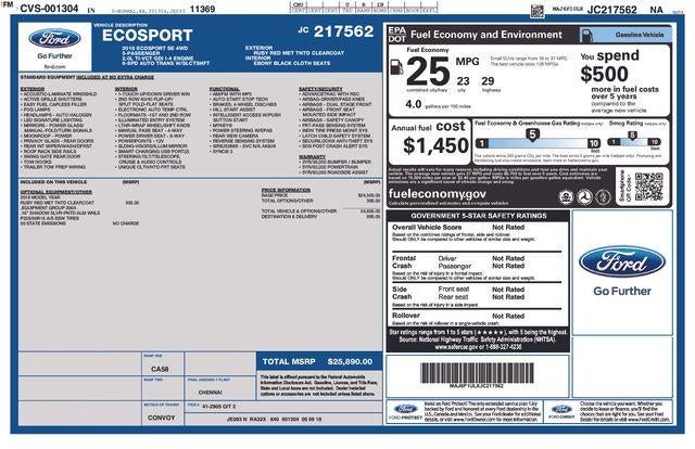 Ruby Red Metallic 2018 Ford EcoSport SE 4WD 6-Speed Automatic 2.0L I4 Ti-VCT GDI