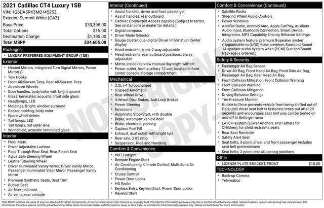 Summit White 2021 Cadillac CT4 Luxury RWD 8-Speed Automatic 2.0L Turbocharged
